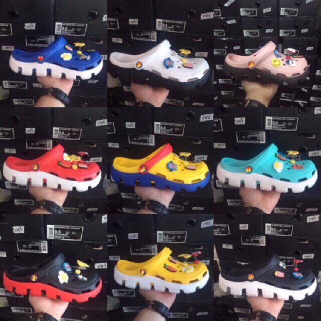 chỉ còn 135,000đ [Box xịn] (Sale 50% + chuẩn chữ + sẵn 20 màu)Tặng 12 jb + box + Ảnh thật Dép Xục Nam Nữ đi mưa thời trang